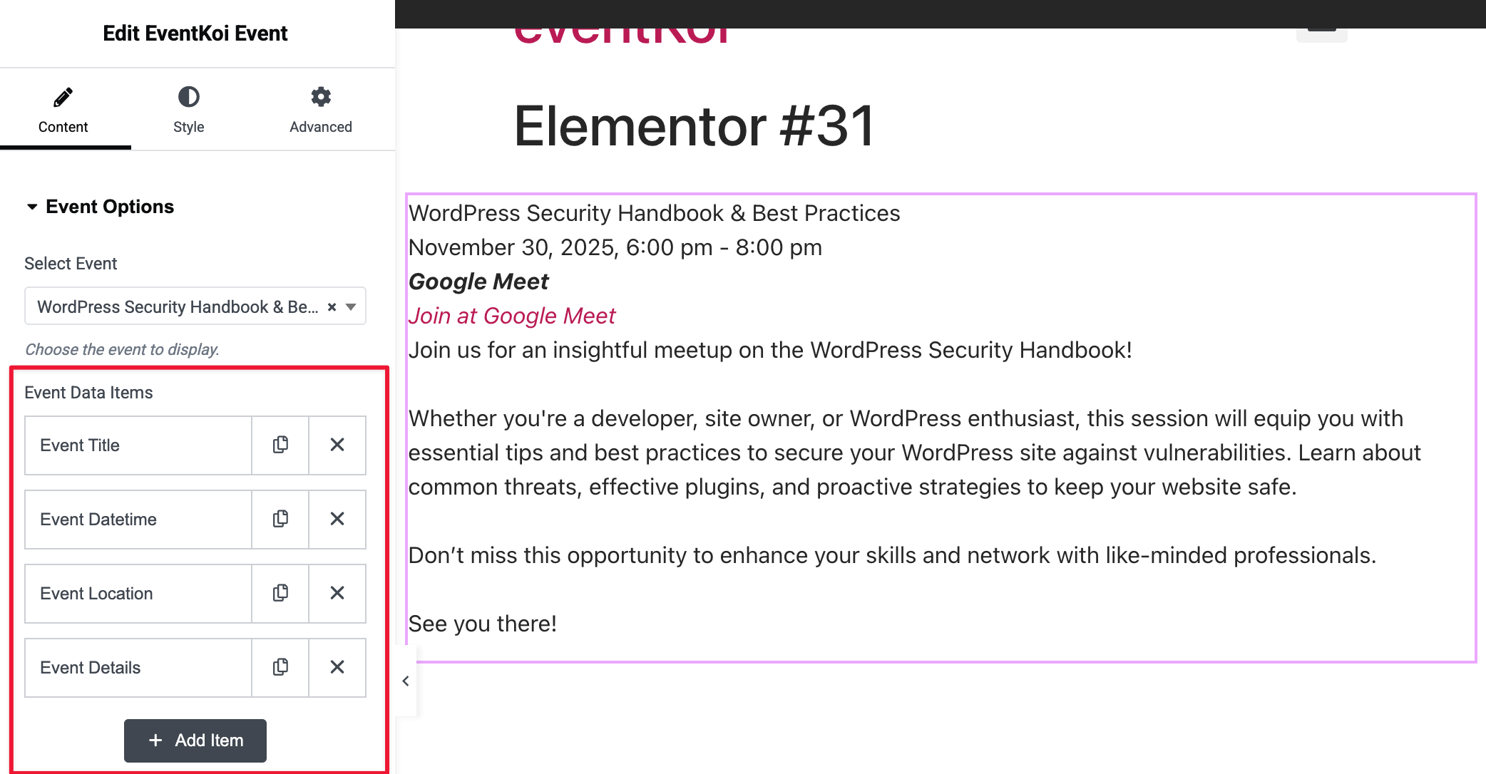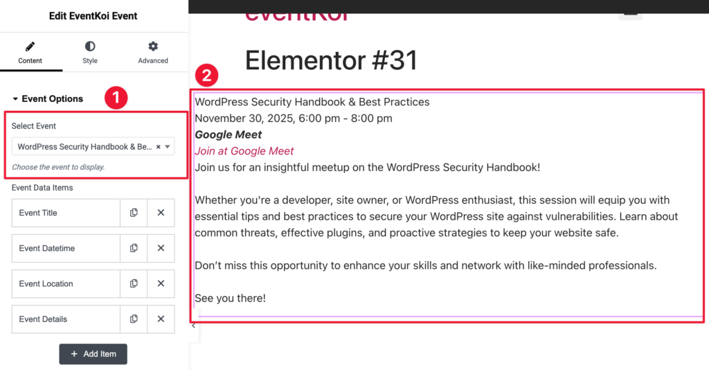 Get more from your EventKoi + Elementor integration