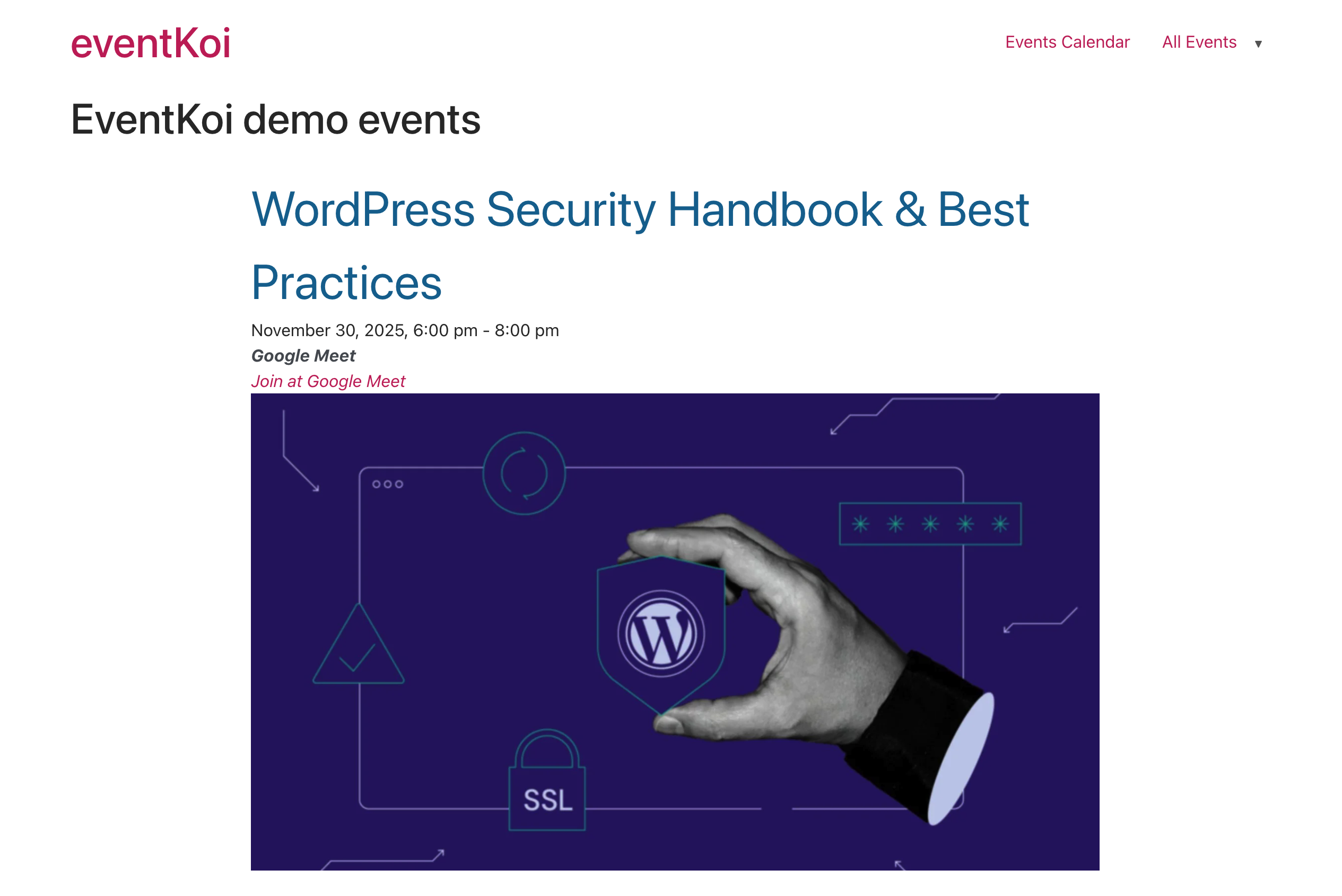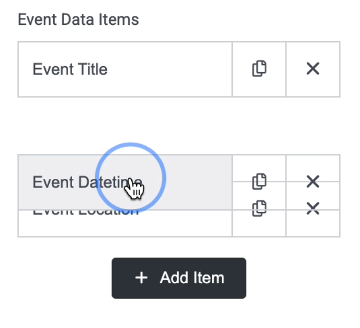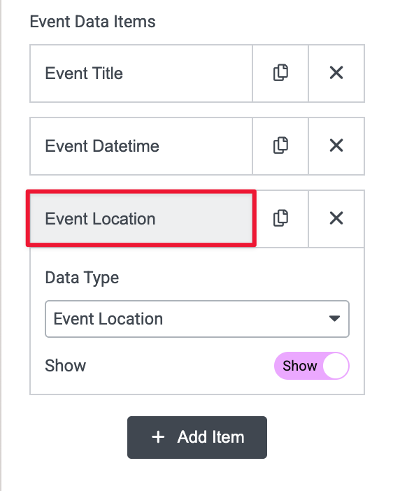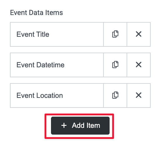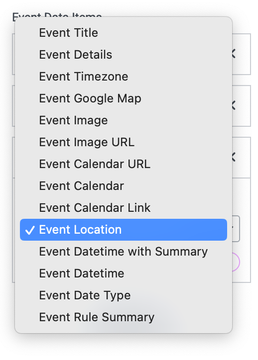 As a default, you’ll see: Event Title, Event Datetime, Event Location, and Event Details.